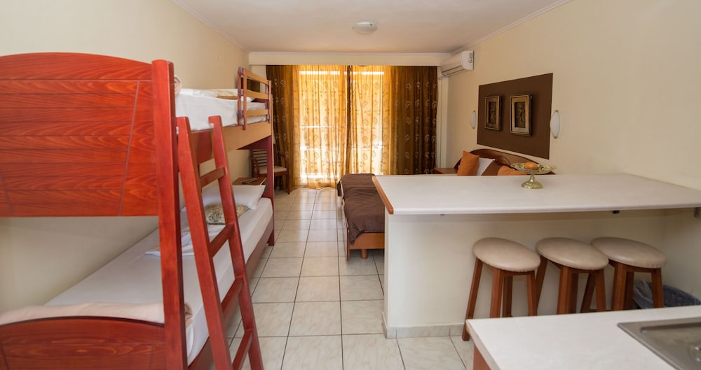 Gjester har tilgang til blant annet en PC-stasjon, renseri-/vaskeritjenester og en døgnåpen resepsjon. Gjestene tilbys flyplasstransport døgnet rundt, mot et tillegg, og ubetjent parkering (inkludert) er tilgjengelig i nærheten. Nyt en rekke rekreasjonsfasiliteter på stedet, som en nattklubb, karaoke og et sesongbasert utendørsbasseng. Dette leilighetshotellet har i tillegg wi-fi (inkludert), concierge-tjenester og et spillrom. Ta deg noe å spise på SNACK BAR, en restaurant ved bassenget med utsikt over bassenget. Du kan også slappe av på rommet og benytte deg av romservice (på fastsatte tidspunkter). Slapp av med noe godt i glasset på en av overnattingsstedets 2 barer/lounger eller 2 bassengbarer. De følgende fasilitetene er sesongmessig stengt hvert år. De vil være stengt fra 16. november til 05. mai:- Spisested(er)