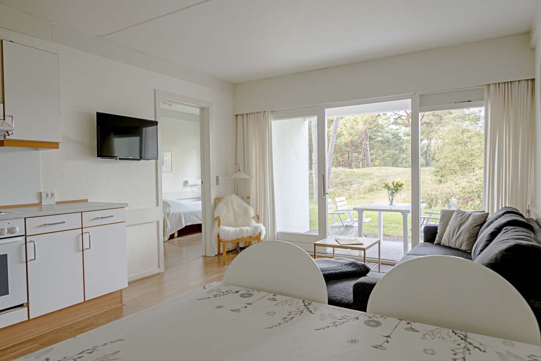 Bo i et koselig miljø med barskog ved siden av den flotte sandstranden, hvor både store og små kan bad og lek til det fulle. Hvis du føler for å aktivere deg, ligger Dueoodes 18-hulls golfbane i nærheten, eller du kan leie en sykkel og se deg rundt.