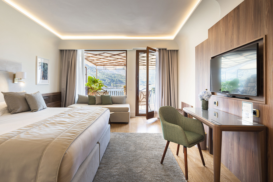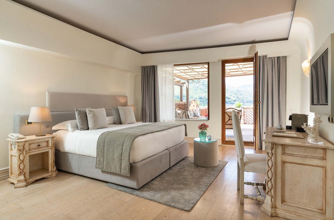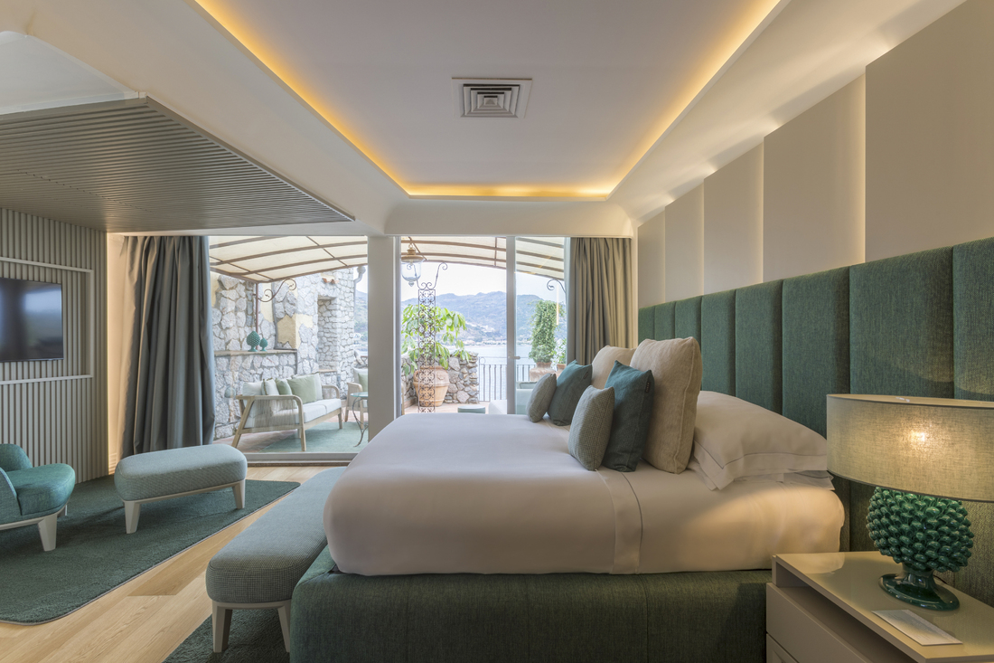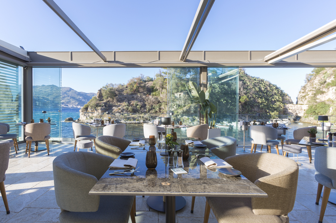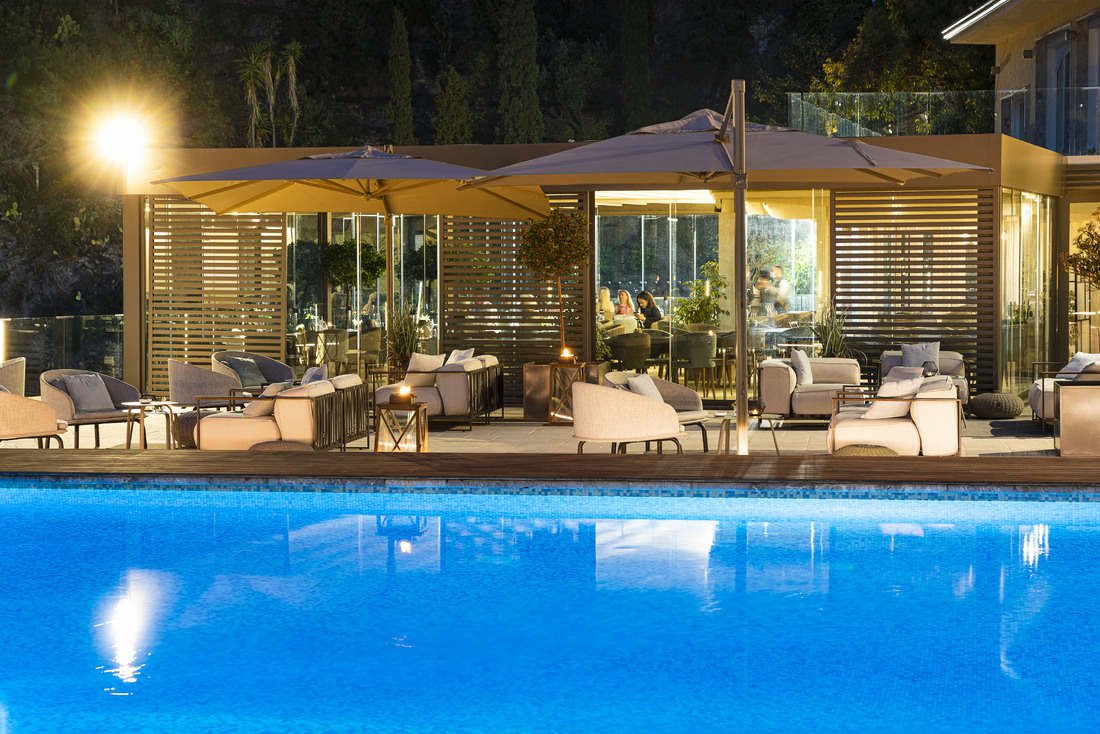 Nært det krystallklare vannet ligger bassenget, bygget inn i en naturlig steinterrasse, rett ved solterrassen og strandbaren, som er det perfekte stedet for total avslapning i eksklusive omgivelser.