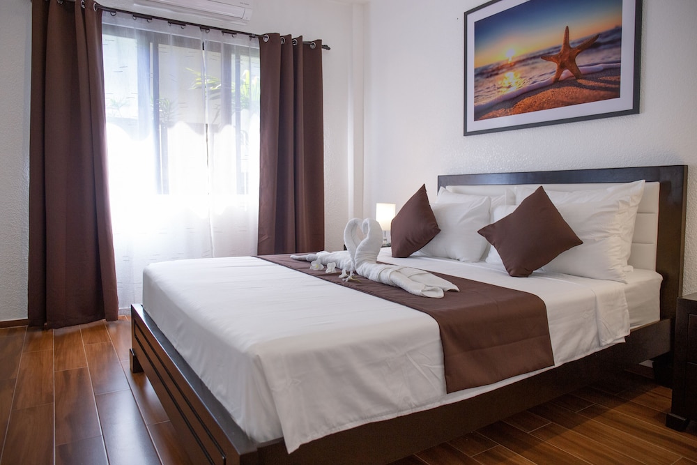 Velger du Aila Homestay som overnattingssted i Panglao, vil du bare ha 10 minutter å kjøre både til Alona strand og til Bohol hvite strand. Denne leiligheten ligger 2,3 mi (3,6 km) unna Dumaluan Beach og 3,5 mi (5,7 km) unna Danao-stranden. Føl deg som hjemme på et av de 6 gjesterommene, som har air conditioning, og som har et kjøkken med kjøleskap/fryseboks i full størrelse og komfyrtopp. Du kan holde deg oppdatert med wi-fi (inkludert) på rommet, og underholdningen er sikret med en 40-tommers smart-TV. Rommene har separat sitteområde og riskoker. Avstandene som vises er rundet av til nærmeste 0,1 kilometer.