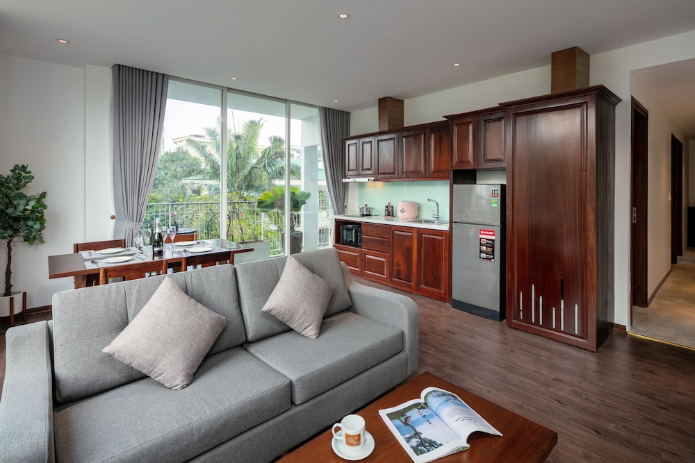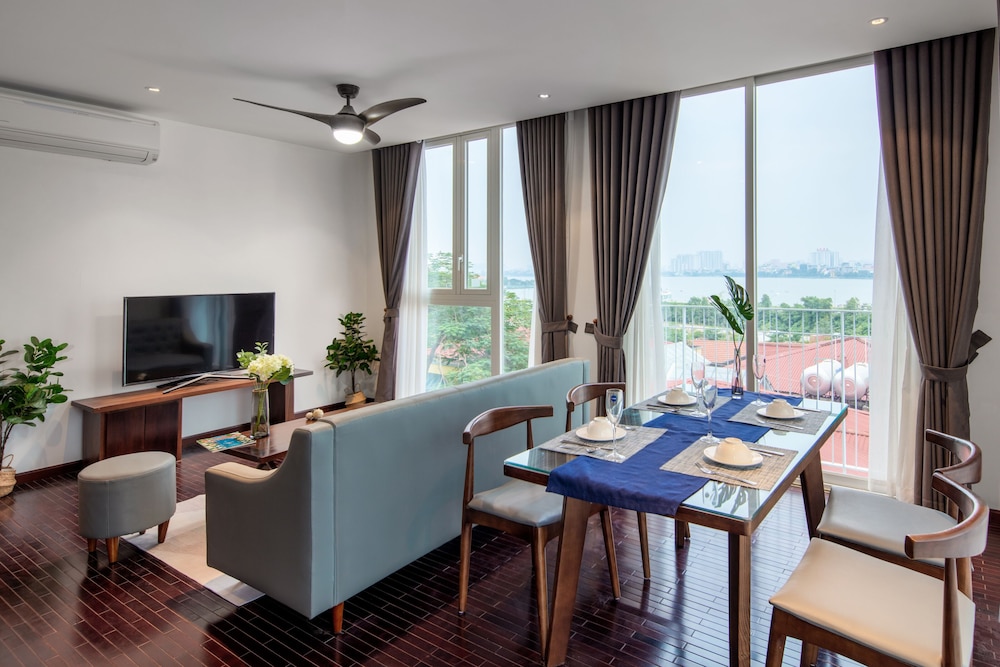 Dersom du velger Pegasy Premium Suites & Residence Westlake i Hanoi (Tay Ho) som overnattingssted vil du bare ha 3 minutter å gå til Vestsjøen og være 4 minutter med bil unna Hoan Kiem-sjøen. Dette leilighetshotellet ligger 1,8 mi (2,9 km) unna Ho Chi Minh-mausoleet og 2,9 mi (4,6 km) unna Hanoi gamleby nattlige marked. Føl deg som hjemme på et av de 10 gjesterommene, som har air conditioning, og som har et kjøkken med kjøleskap/fryseboks i full størrelse og mikrobølgeovn. Du kan holde deg oppdatert med wi-fi (inkludert) på rommet, og underholdningen er sikret med digital-TV. Rommene har skrivebord og separat sitteområde, og rengjøring tilbys daglig. Avstandene som vises er rundet av til nærmeste 0,1 kilometer.