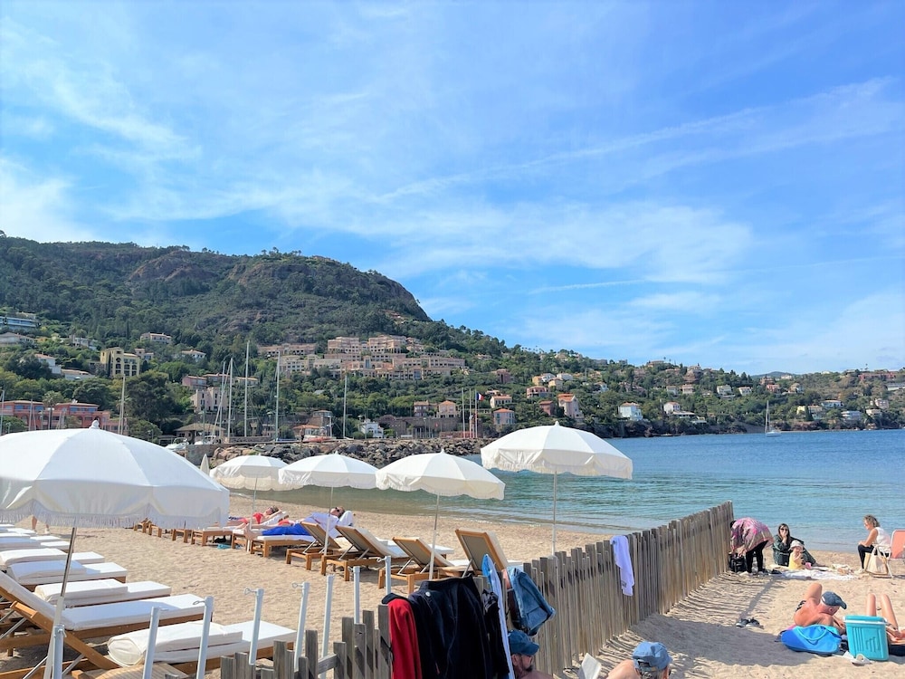 Velger du denne leiligheten som overnattingssted i Theoule-sur-Mer, vil du ha 2 minutter å gå til Theoule-sur-Mer strand og 13 minutter til Esterelfjellene. Denne leiligheten ligger 6,3 mi (10,1 km) unna La Croisette-promenaden og 5,9 mi (9,5 km) unna Cannes havn. Føl deg som hjemme i denne leiligheten, som er utstyrt med et kjøkken med kjøleskap og stekeovn. Wi-fi (inkludert) gjør at du kan holde deg oppdatert. Bekvemmelighetene omfatter mikrobølgeovn og vaskemaskin. Avstandene som vises er rundet av til nærmeste 0,1 kilometer.