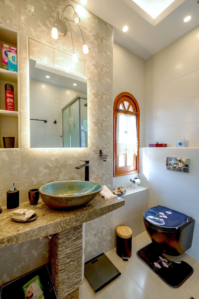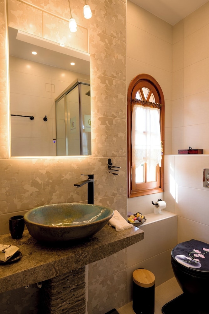 I Thermi ligger Archontiko Alexandros Luxury Suites plassert ved en innsjø og mindre enn en 10 minutters kjøretur fra Domaine Florian og Polis konferansesenter. Dette hotellet ligger 13,1 mi (21,1 km) unna Aristotelous-plassen og 3,6 mi (5,9 km) unna Waterland. Skjem bort deg selv og bo på et av de 4 gjesterommene, som er individuelt dekorert, og som er utstyrt med oppvarmet gulv og Flatskjerm-TV. Rommene har egen møblert balkong eller terrasse. Du kan holde deg oppdatert med wi-fi (inkludert) på rommet, og underholdningen er sikret med digital-TV. Rommene har minibar og flaskevann (inkludert), og rengjøring tilbys daglig. Avstandene som vises er rundet av til nærmeste 0,1 kilometer.