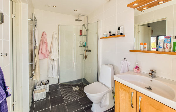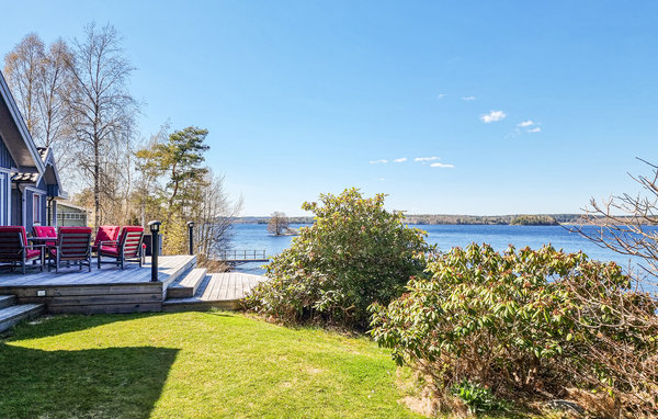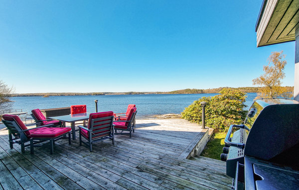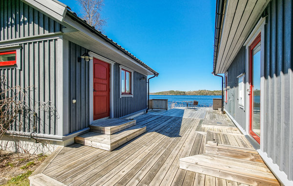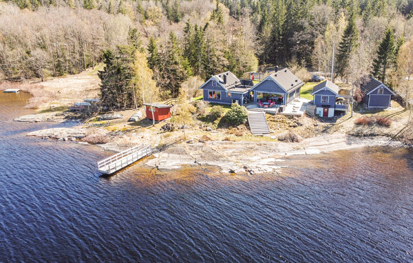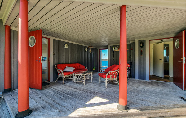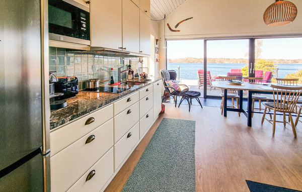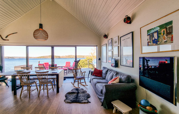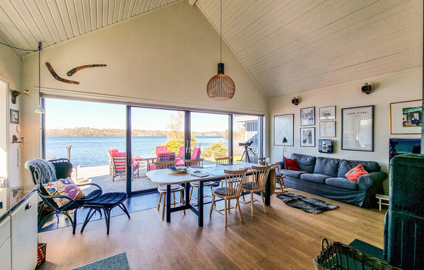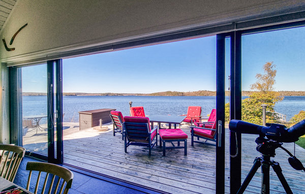 Velkommen til dette eksklusive, romslige feriehuset på en vakker strandtomt nær skogen! Huset består av tre bygninger og byr på høy bokomfort og en rekke fordeler. Det store kjøkkenet innbyr til sofistikert matlaging. Om kveldene kan du sette deg godt til rette i de koselige, blåstripete sofaene foran varmeovnen. Det høye panoramavinduet i stuen gir både en vakker utsikt og et herlig lysinnslipp. På terrassen kan dere samles til deilig grillmat og hoppe i sjøen. Kanskje en løpetur om morgenen? Fileter fisken utendørs. Barna kan undersøke fangsten med lupe eller se på undervannsverdenen på magen på badebryggen. Omgivelsene innbyr til flotte fotturer og fisketurer.