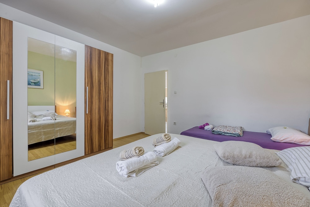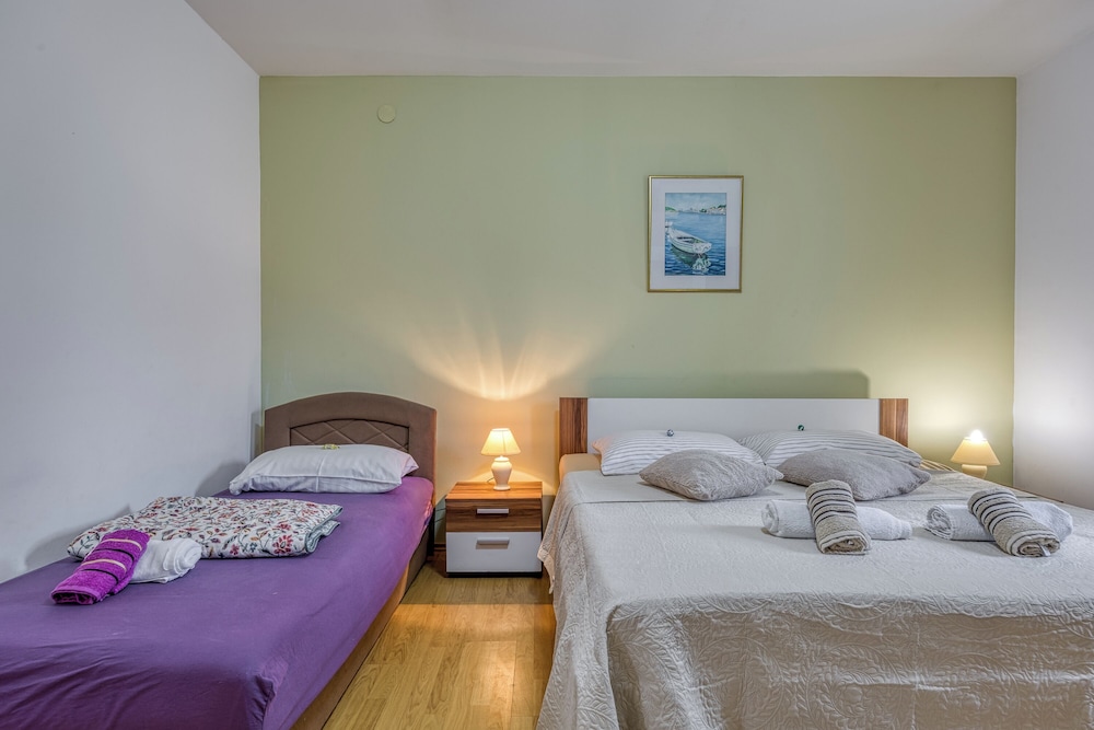 Velger du Island Top Sea View Estate i Mali Losinj, vil du ha Kvarnerbukta like rundt hjørnet og bare 4 minutter å kjøre til Church of St. Ivan the Baptist. Denne leiligheten ligger 4,7 mi (7,6 km) unna Way of the Cross og 5 mi (8 km) unna Losinj Aromatic Garden. Føl deg som hjemme på et av de 3 gjesterommene, som har air conditioning, og som har et kjøkken med kjøleskap og ovn. Underholdningen er sikret med en 32-tommers smart-TV med kabel-TV, og wi-fi (inkludert) gjør at du kan holde deg oppdatert. Rommene har kaffetrakter/tekoker og vaskemaskin. Avstandene som vises er rundet av til nærmeste 0,1 kilometer.