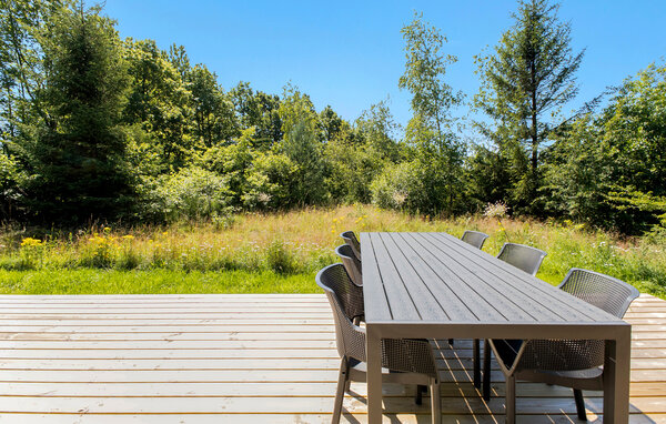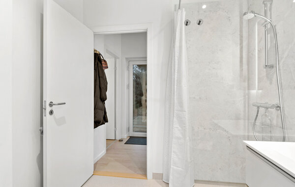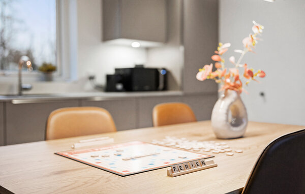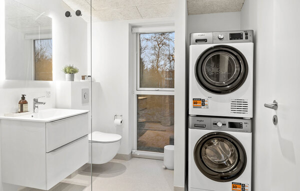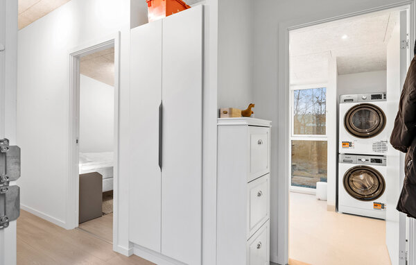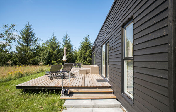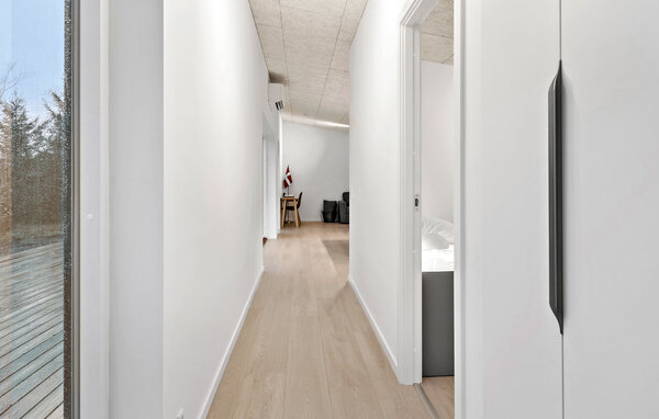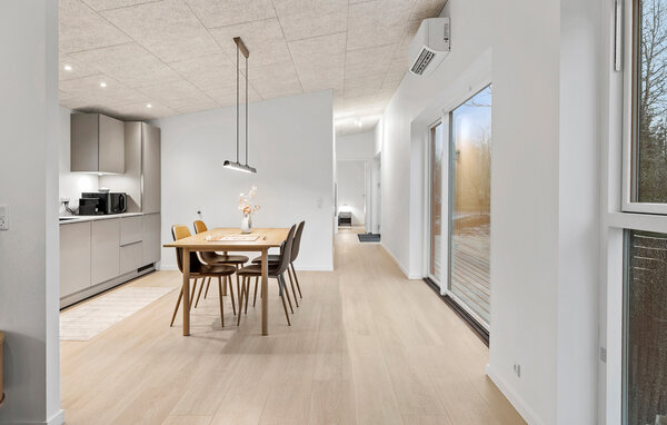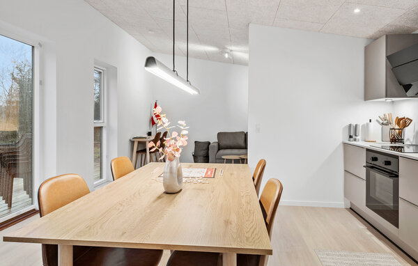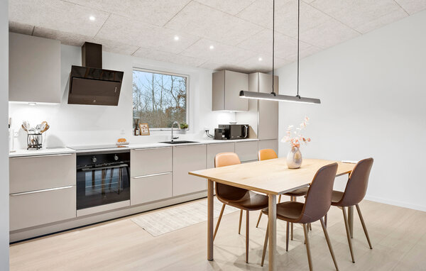 Opplev en helt spesiell form for time-out i ditt stilfulle feriehus i Råsted, som tilbyr alt du trenger for en avslappende ferie midt i et idyllisk landskap. Nyt harmonien mellom komfort og natur i et miljø som innbyr til avslapping. Huset imponerer med sin moderne, minimalistiske innredning. Store vinduer gir rikelig med lys og en fantastisk utsikt over landskapet. Slapp av i den koselige stuen, eller lag dine favorittretter på kjøkkenet. Den åpne spisestuen gir plass til sosialt samvær om kveldene, enten det er over et brettspill eller en felles middag. Den klare, skandinaviske estetikken skaper en varm og innbydende atmosfære.