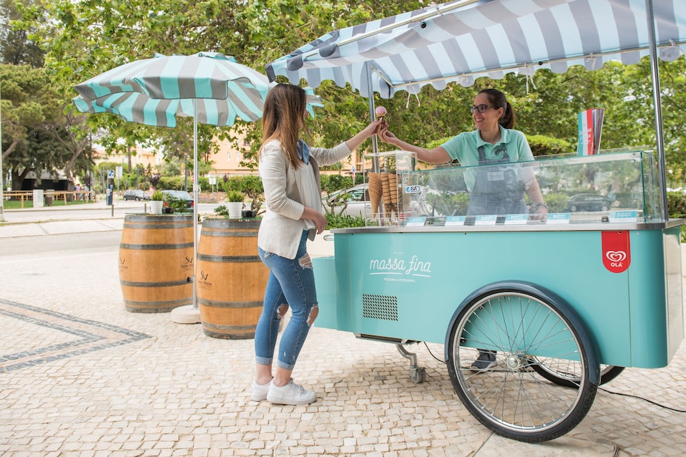Vila Gale Ampalius Resort Hotel ligger sentralt til i Loulé, like ved Vilamoura-stranden og mindre enn 5 minutter unna Vilamoura Marina med bil. Dette leilighetshotellet ved stranden ligger 2,7 mi (4,3 km) unna Praia da Falésia og 10 mi (16,1 km) unna The Strip (Stripen). Føl deg som hjemme i et av de 357 gjesterommene, som har minibar og LCD-TV. Du kan holde deg oppdatert med wi-fi (inkludert) på rommet, og underholdningen er sikret med kabel-TV. Badene har kombinert dusj/badekar, toalettartikler (inkludert), og bideer. Rommet har telefon, samt safe og skrivebord. Avstandene som vises er rundet av til nærmeste 0,1 kilometer.