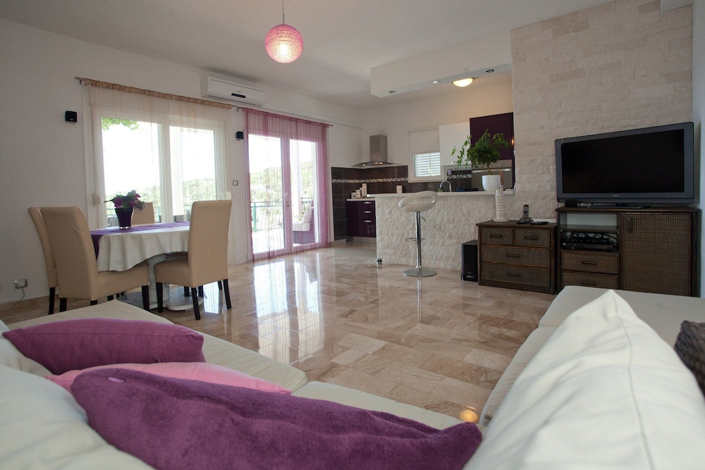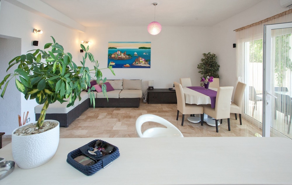 Dersom du velger Wonderful Visinisce Apartments With Terrace and Sea Views når du skal besøke Marina, bor dui nærheten av strand samtidig som du er 16,8 mi (27 km) unna Primosten-stranden og 7,4 mi (12 km) unna Punta Planka. Denne leiligheten ligger 9,1 mi (14,7 km) unna Šepurina strand og 9,2 mi (14,8 km) unna Rogoznica utsiktspunkt. Føl deg som hjemme i et av de 3 gjesterommene, som har air conditioning, og som har et kjøkken. Underholdningen er sikret med en 32-tommers flatskjerm-TV med parabol-TV, og wi-fi (inkludert) gjør at du kan holde deg oppdatert. Rommene har kjøleskap, og barnesenger/babysenger (mot et tillegg) kan fås på forespørsel. Avstandene som vises er rundet av til nærmeste 0,1 kilometer.