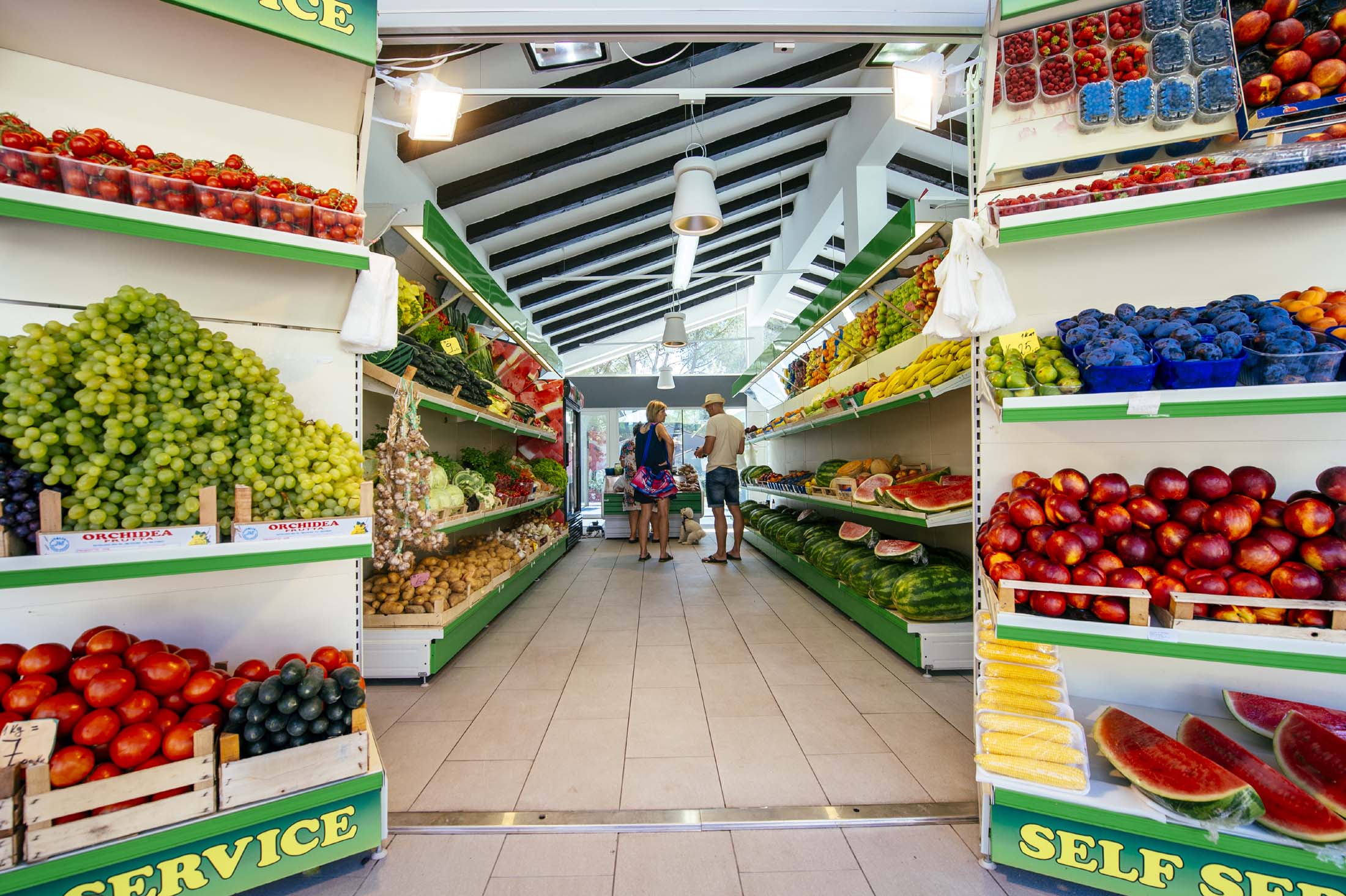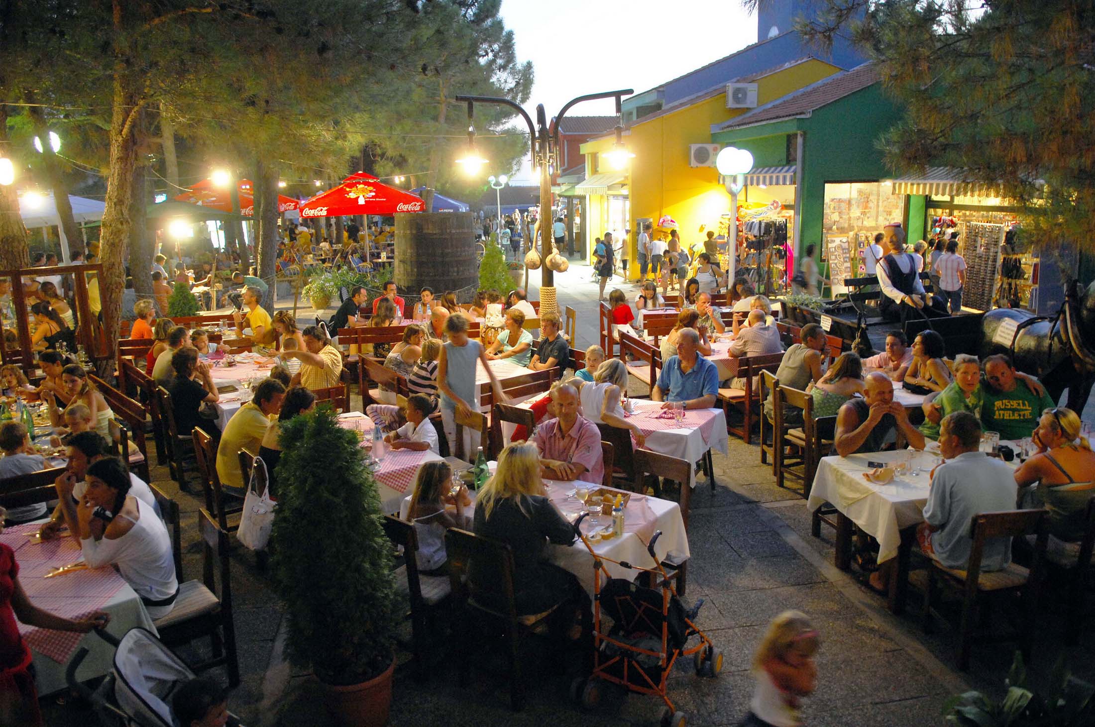 Pulsåren i feriestedet er en fin hovedgate, omgitt av flere restauranter, kafeer og en og annen populær isbar. Om kvelden er det liv og røre her, og det er en hyggelig og avslappende atmosfære. Det er også en matbutikk, et bakeri, et apotek, en salgsautomat og vaskeritjenester. Hvis du ønsker å piffe deg opp, er det en frisør, klesbutikk og mulighet til massasje.